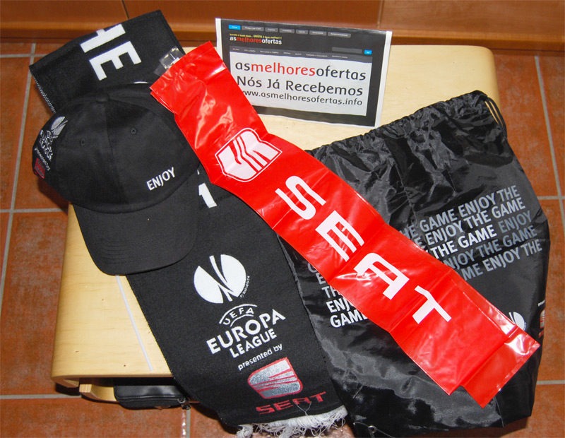 Participar é super simples. Basta fazer o registo grátis aqui e fazer previsões dos resultados dos jogos da Liga Europa. Se acertarmos vamos acumulando pontos que depois podem ser trocados por vários prémios, entre eles o Fankit SEAT Liga Europa que recebemos recentemente em casa. É constituído por um boné, por um cachecol, uma bolsa e dois insufláveis para fazer barulho e apoiar a nossa equipa durante os jogos.
