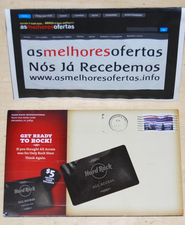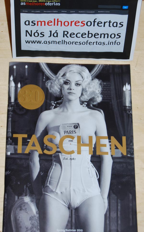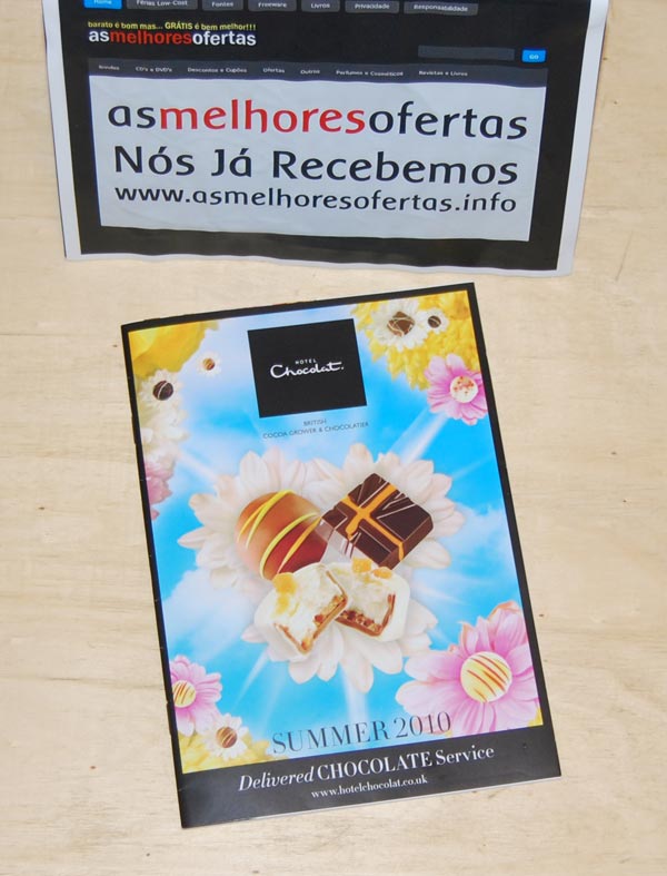 Uma nova edição da revista Taschen, o nosso cartão de membro do Hard Rock Cafe, o catálogo do Hotel Chocolat e uma amostra grátis de creme desodorizante, este é o novo conjunto de ofertas que recebemos em casa.